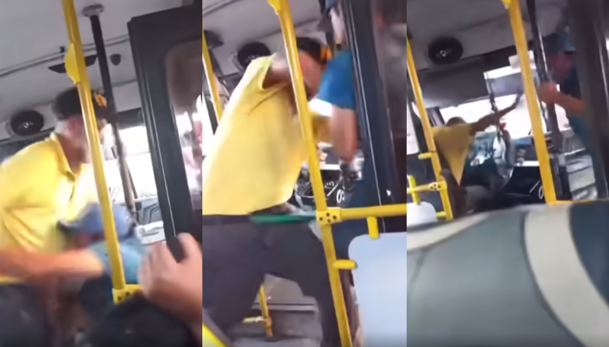 En el registro audiovisual se capta la violencia con que actúa el sujeto, golpeando al conductor de la máquina en reiteradas oportunidades, pese a los gritos de los pasajeros.